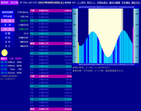 潮廻り・2021年06月26日(土曜) ・潮廻り:大潮