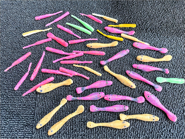 ☆Gucci.factry☆(YMG自作創作品:エビカニフレーバー入り) ・コピーサーディン:2.0in ・ハゼドン:2.0in ・稚魚シャッドFパドル:2.0in |