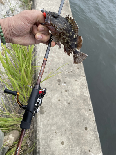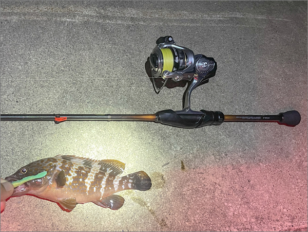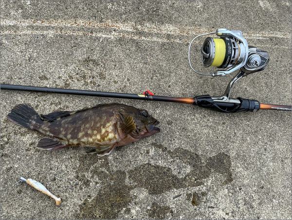 バーチカルでアコウ!?どうもこのエリアは暗くなるとライトワインドには反応が無くなるんだよね~